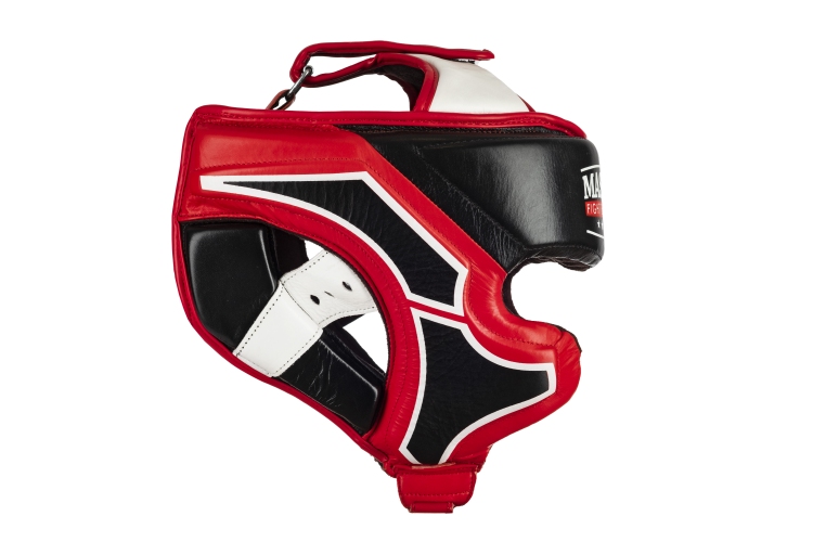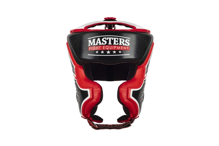 Kask bokserski MASTERS KSS-TECH to idealne rozwiązanie do mocnych sparingów. Jego zewnętrzna strona została pokryta naturalną skórą bydlęcą o najwyższej jakości i wysokim współczynniku wytrzymałości na zniszczenia. Konstrukcja kasku zapewnia maksimum bezpieczeństwa, mocna i duża część czołowa i boczna kasku, dobrze dopasowana część konstrukcyjna chroniąca kości policzkowe oraz czubek głowy jest doskonałym rozwiązaniem pomagającym chronić zawodnika przed kontuzjami.