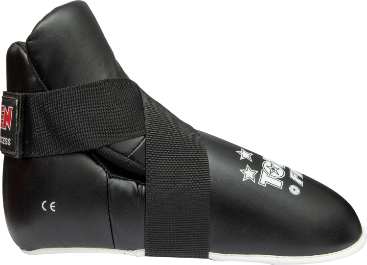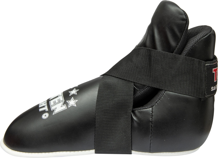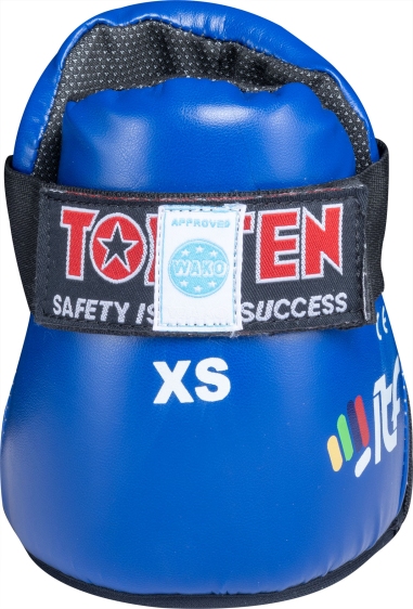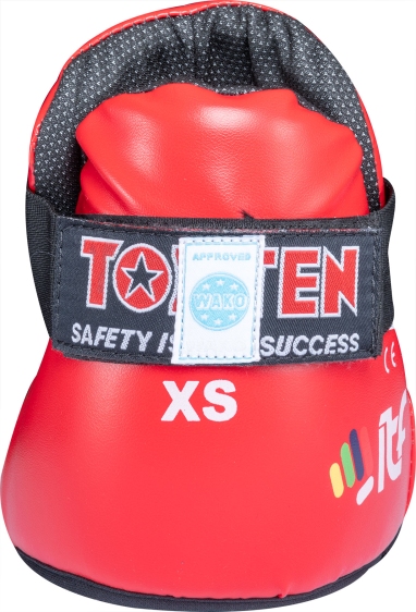 Ochraniacze stóp TOP TEN model „FIGHT”, wykonane z wysokiej jakości skóry syntetycznej. Specjalny wypełniacz z pianki PPS chroni przed podbiciami i obrażeniami kostki. Zapięcie na rzepy. Posiadają atest WAKO.
