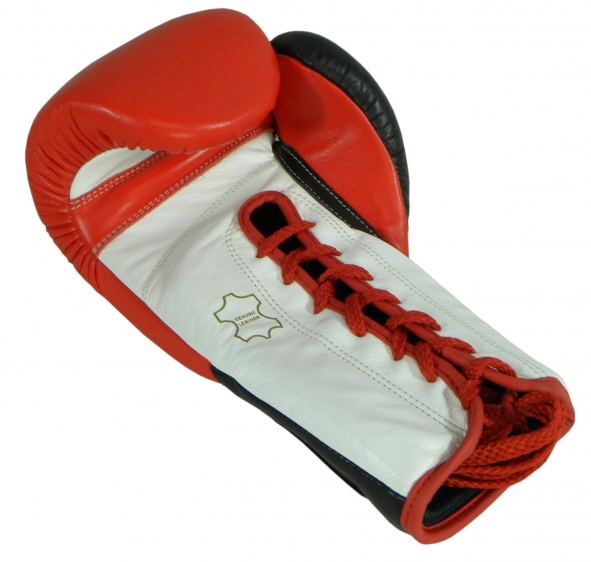 Rękawice bokserskie stworzone z myślą o turniejach. Część frontowa rękawicy gładka co daje możliwość zastosowania własnego nadruku. Wiązanie na sznurówki daje możliwość pełnego dopasowania rękawicy do dłoni. Jest niezwykle proste w użyciu, wystarczy pociągnąć jedną ręką za sznurki i cała rękawica dopasowuje się do kształtu dłoni.