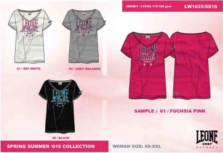 Oryginalny produkt firmy LEONE. Wszystkie szwy podwójne. Wzmocnienie tasiemką firmową szwu na karku. Wszywka z logiem firmowym na prawym ranieniu oraz na tylnej lewej części koszulki.