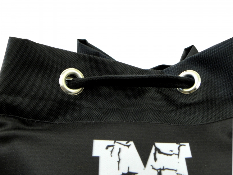 Praktyczny worek  na ramię wykonany z odpornego brezentu. Idealny do zabezpieczenia sprzętu treningowego. Wewnątrz przegródka ułatwiająca przechowywanie. W górnej cześci ściągany sznurkiem, który przechodzi w wygodny uchwyt do przenoszenia. Nadruk MSTRS na przedniej części worka.